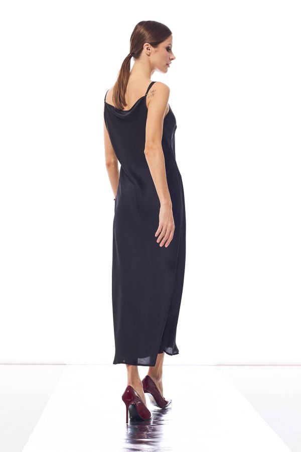 Платье женское, приталенного силуэта, выполнено из эластичного полотна с пайетками, на трикотажной подкладке. Рукав цельновыкроенный, горловина округлой формы. В области талии платье фиксируется эластичной тесьмой, которая пришита в шов соединения верхней и нижней части платья.