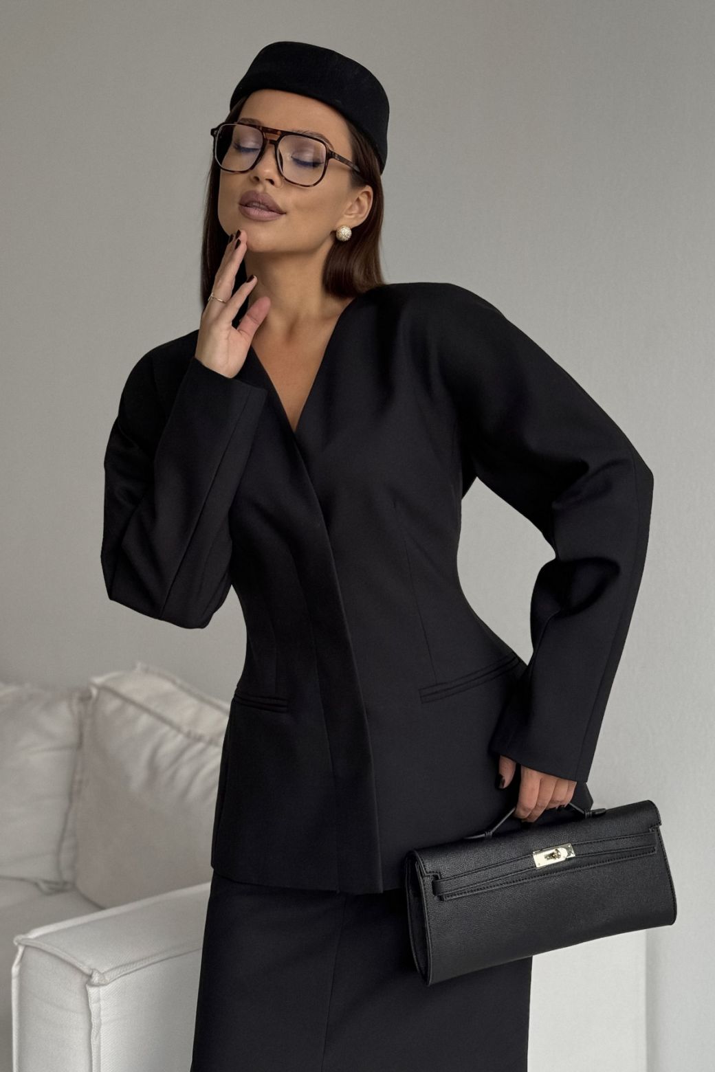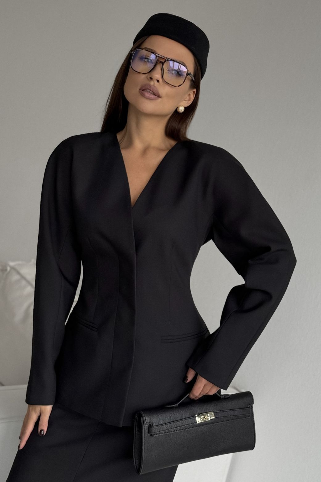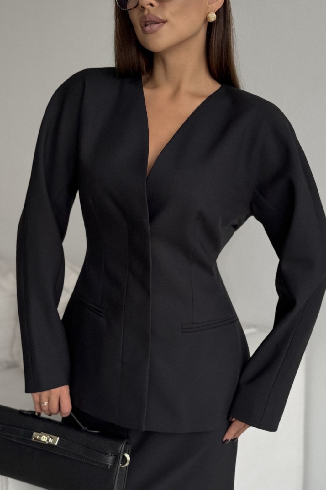 Состав: полиэстер - 65%, вискоза - 32%, спандэкс - 3%; подкладка: полиэстер - 55%, вискоза - 45%