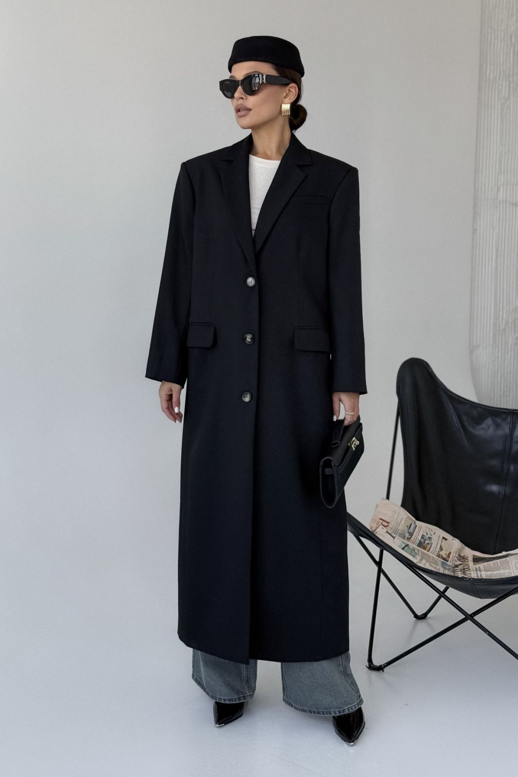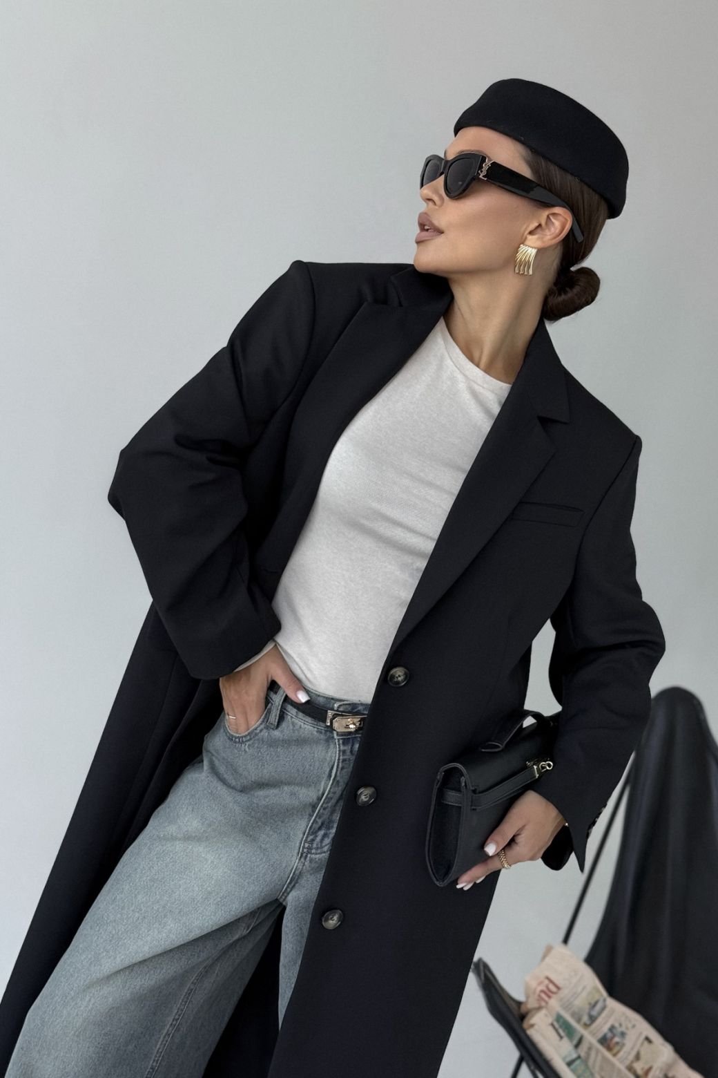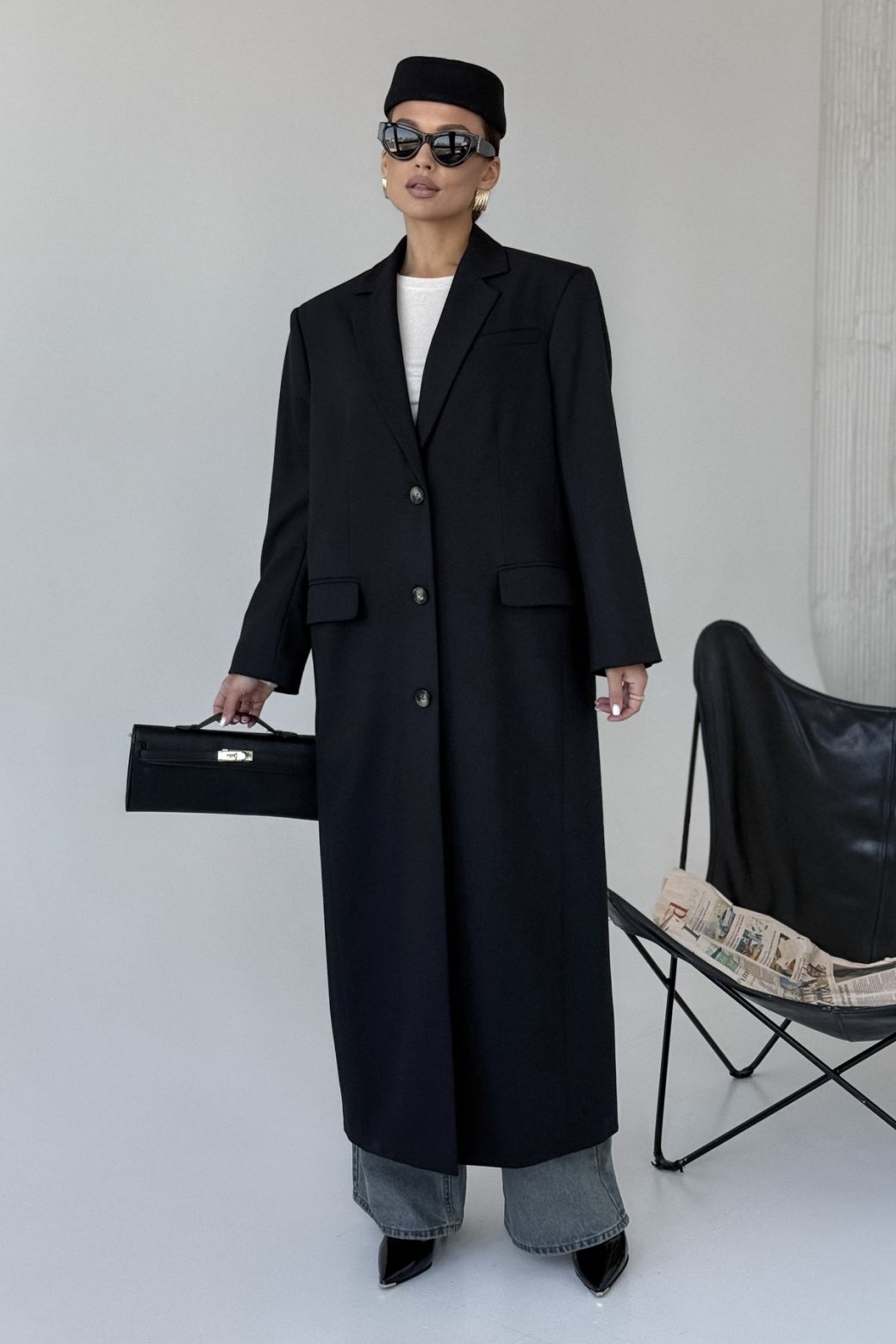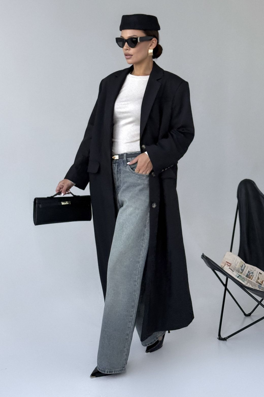 Жакет женский свободного силуэта, выполнен из костюмной ткани. Вортник стояче - отложной с отворотами лацканов, линия плеча расширена. Застежка центральная на петли и пуговицы. Рукав втачной двухшовный, по низу рукава шлица. По переду жакета прорезные карманы с клапанами. Сзади жакета по среднему шву шлица.