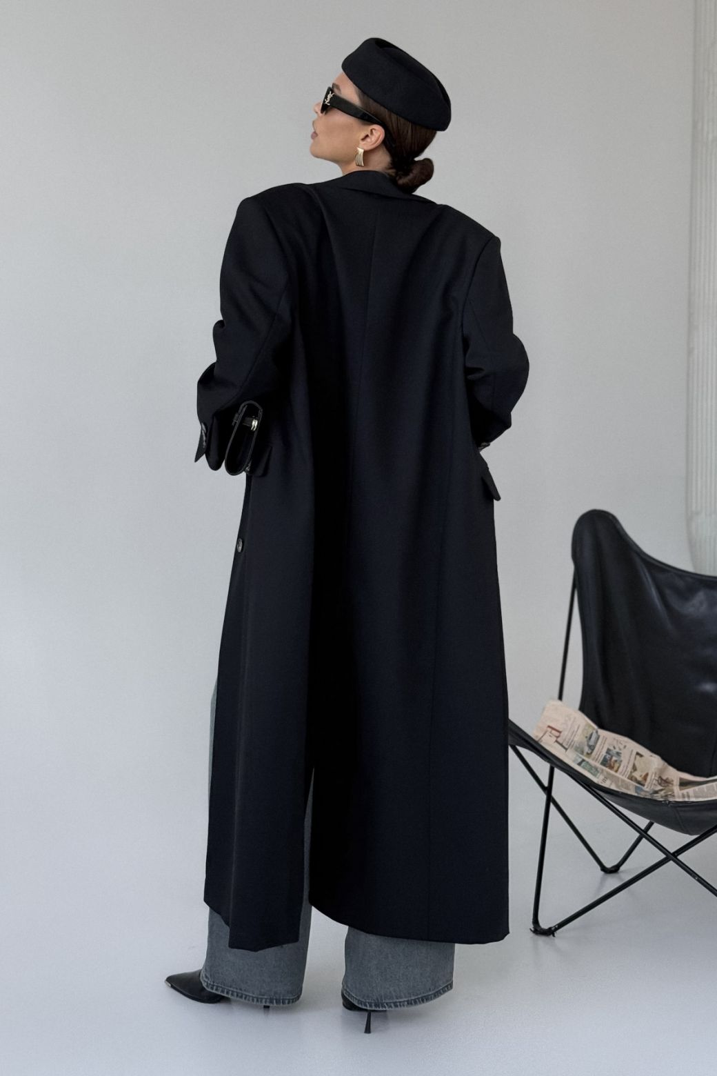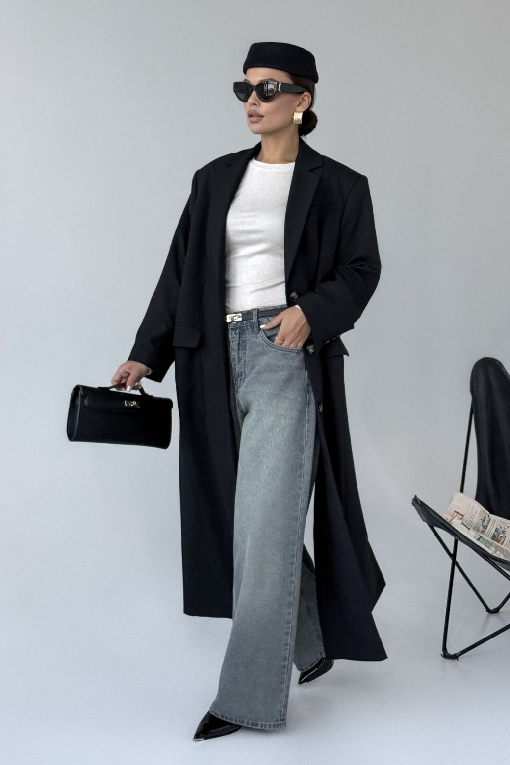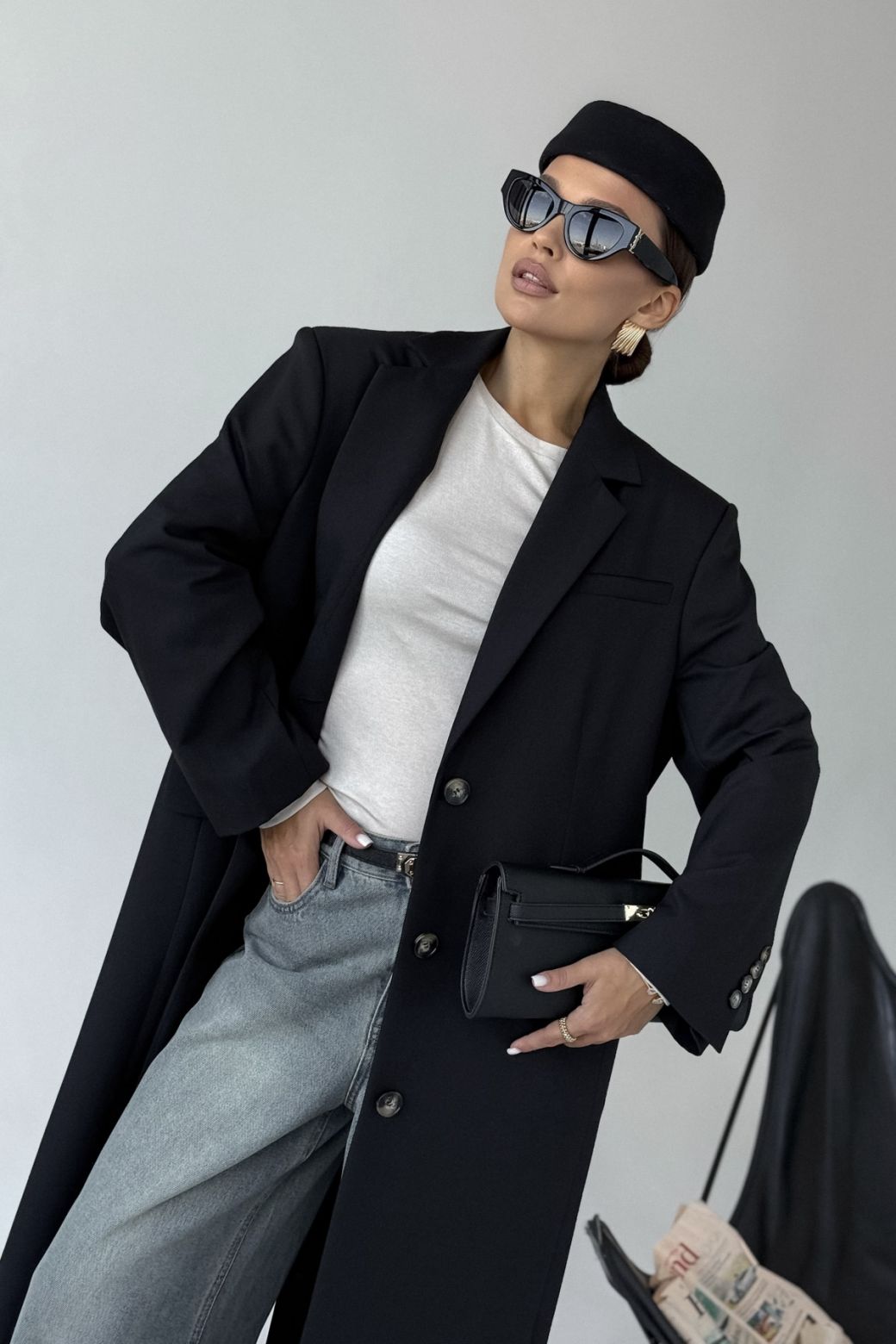 Жакет женский свободного силуэта, выполнен из костюмной ткани. Вортник стояче - отложной с отворотами лацканов, линия плеча расширена. Застежка центральная на петли и пуговицы. Рукав втачной двухшовный, по низу рукава шлица. По переду жакета прорезные карманы с клапанами. Сзади жакета по среднему шву шлица.