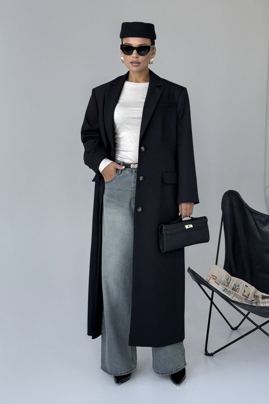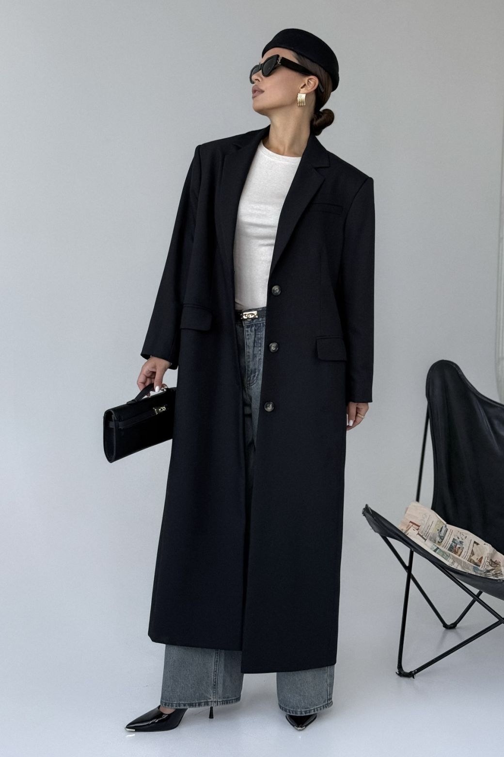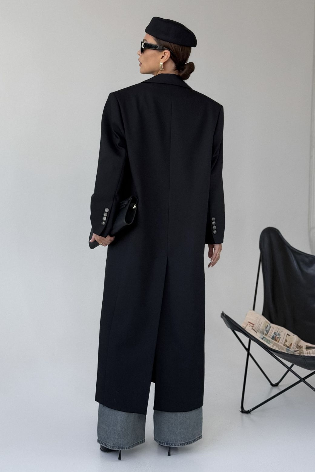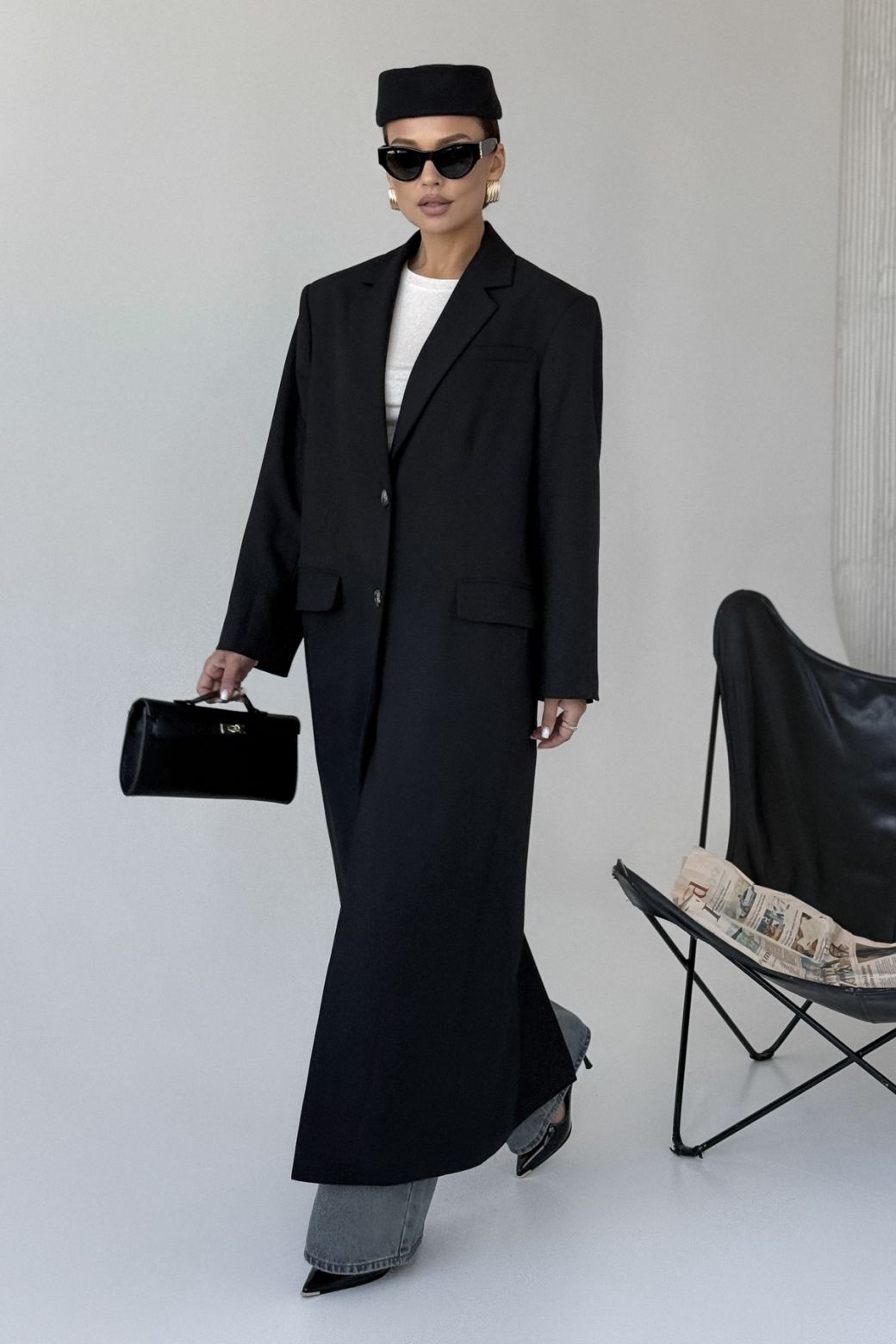 Жакет женский свободного силуэта, выполнен из костюмной ткани. Вортник стояче - отложной с отворотами лацканов, линия плеча расширена. Застежка центральная на петли и пуговицы. Рукав втачной двухшовный, по низу рукава шлица. По переду жакета прорезные карманы с клапанами. Сзади жакета по среднему шву шлица.