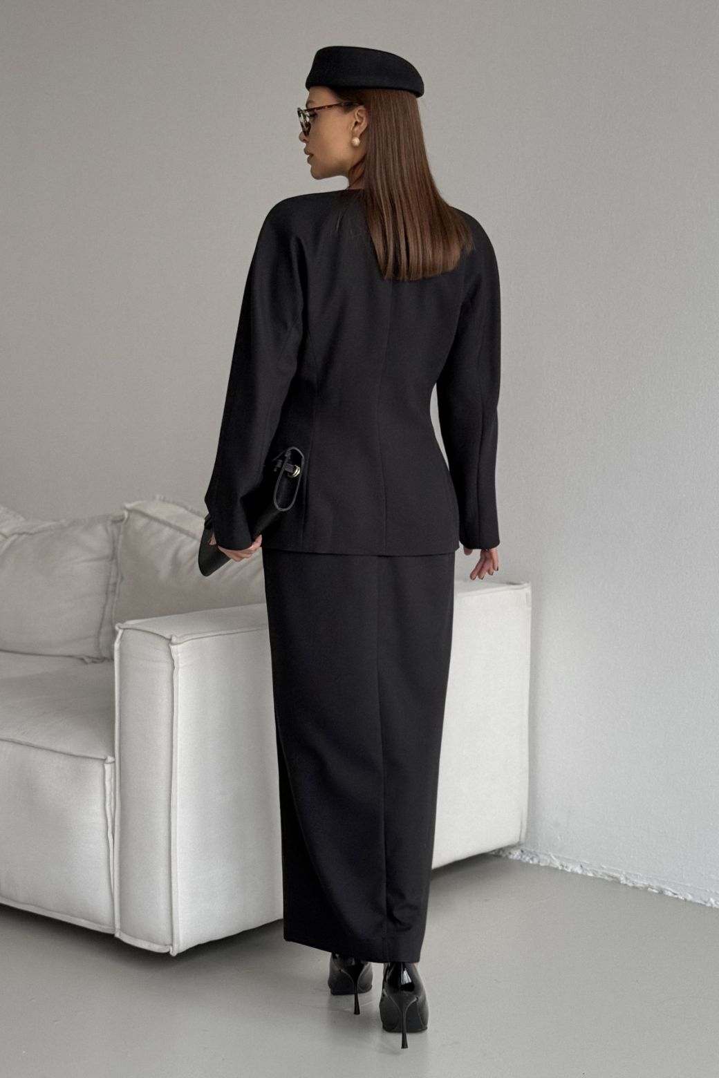 Состав: полиэстер - 65%, вискоза - 32%, спандэкс - 3%; подкладка: полиэстер - 55%, вискоза - 45%