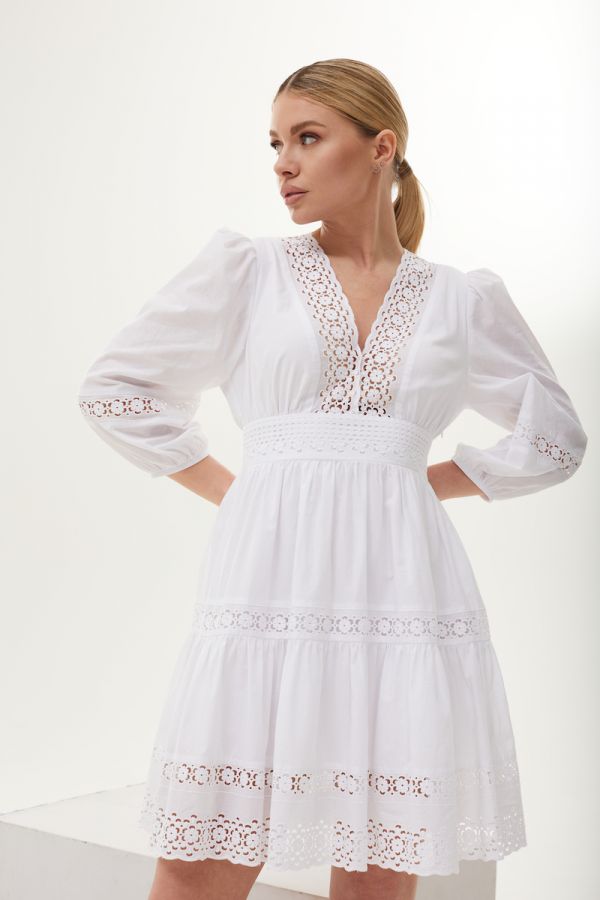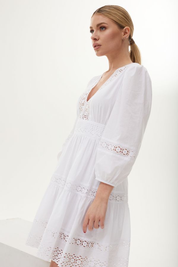 Платье женское приталенного силуэта. Выполнено из 100% хлопка и ришелье, на хлопковой подкладке