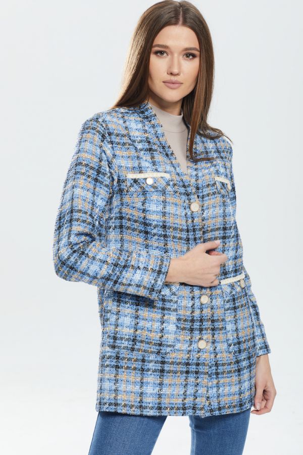 Жакет женский. Состав: 42 % полиакрилонитрил, 32 % полиэстер, 16 % хлопок, 8 % вискоза, 2 % эластан