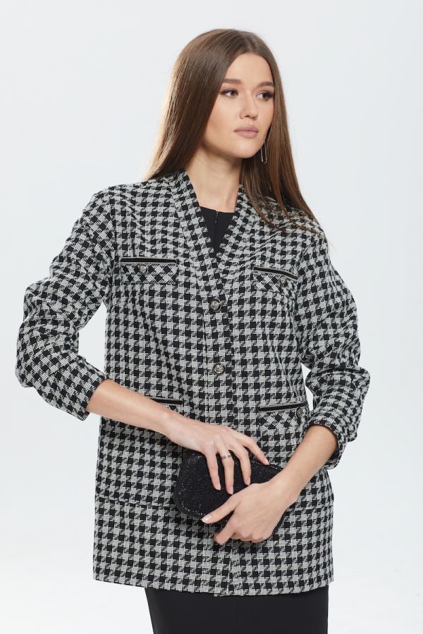 Жакет женский. Состав: 42 % полиакрилонитрил, 32 % полиэстер, 16 % хлопок, 8 % вискоза, 2 % эластан